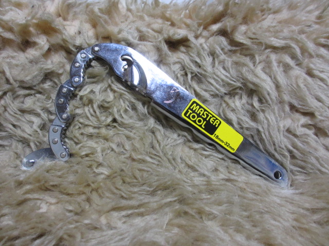 ナットとかにこのチェーン?を巻き巻きして回すって道具です。カドがなめたボルトやナットに対応できるらしい