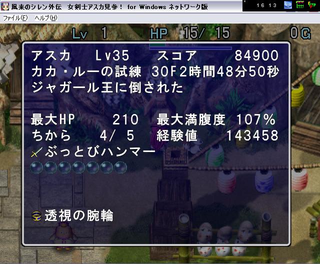 カカ・ルー30Fまで行って死んだ夕雅です、全50Fでしょ落とし穴8個くらいあったからあと少しじゃん
