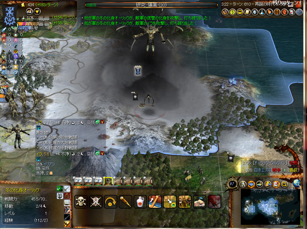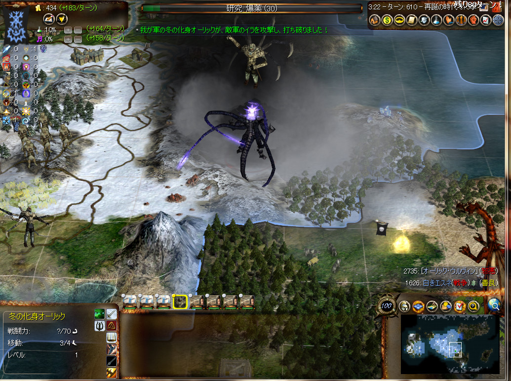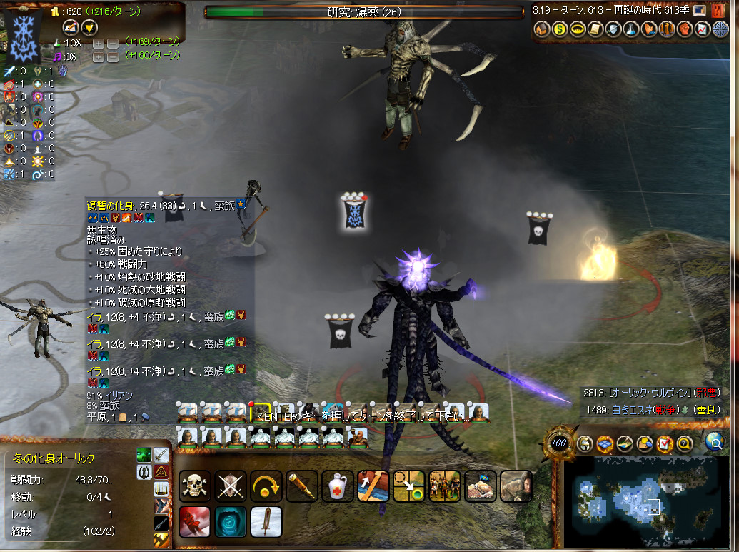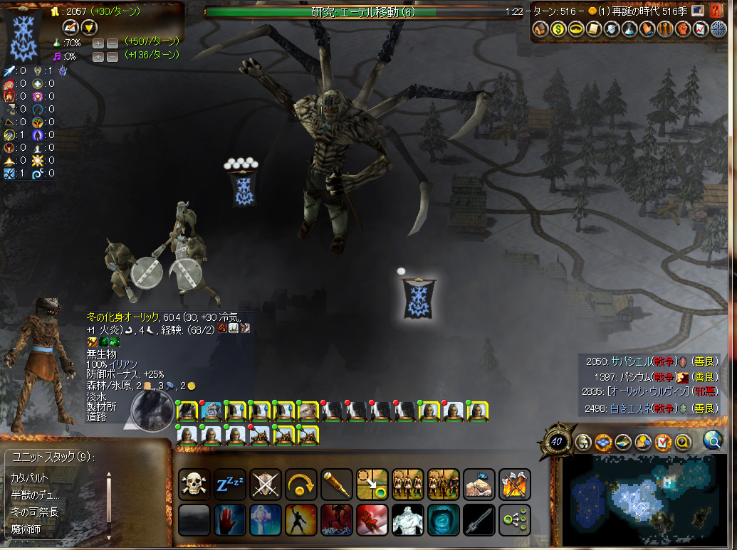 鈍足にすれば移動力のあるやつじゃないと都市から動けないし、そこを司祭とオーリックの豪雪でごっそり削り