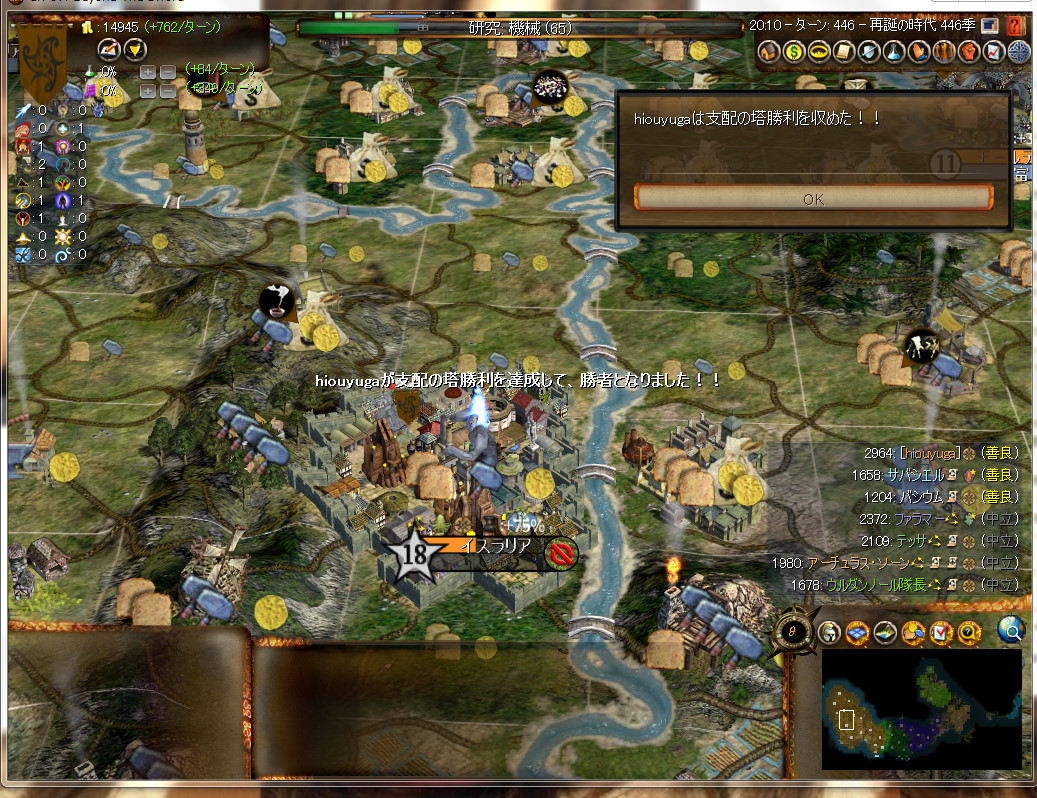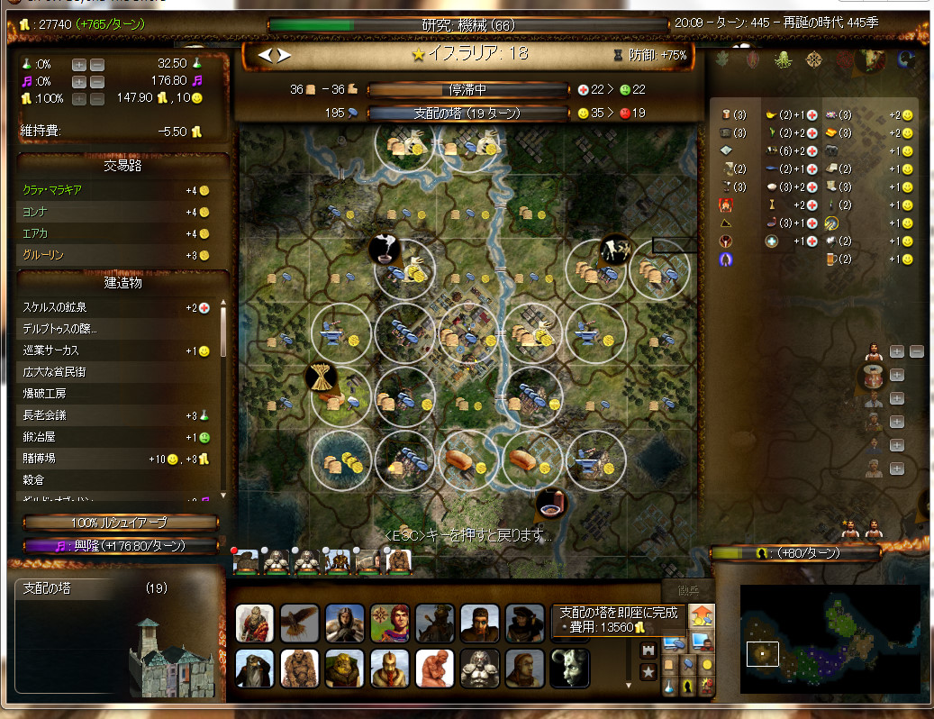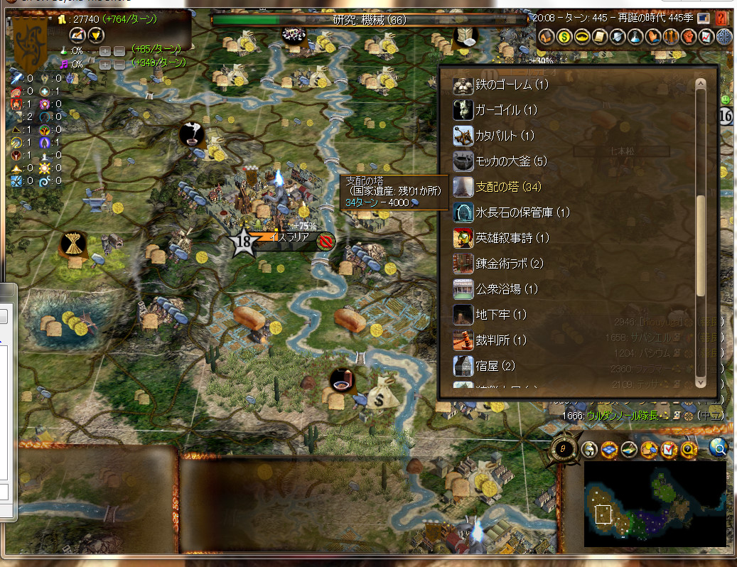 増えた偉大な技師もポンポン都市に定住させた結果、34ターンで支配の塔が建てれる!個人的に言うとかなりはやい!サラマンダーよりも”ずっと”はやい!!